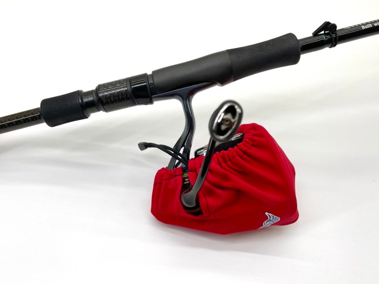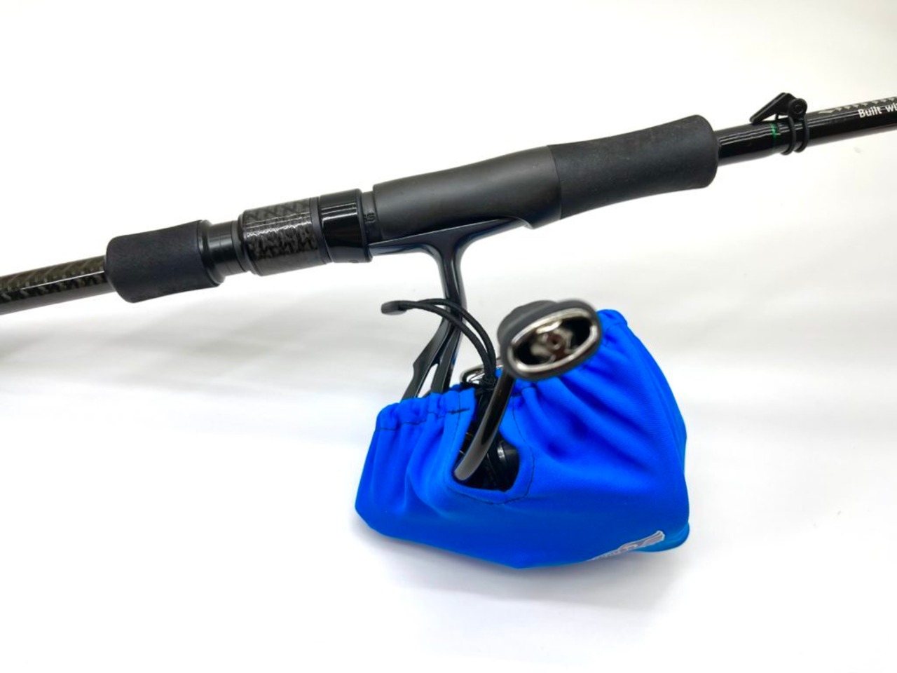 スピニング用はベイト用に比べ覆う面積が大きくなるので、海用電動リールなどの大型リールにもフィットします。